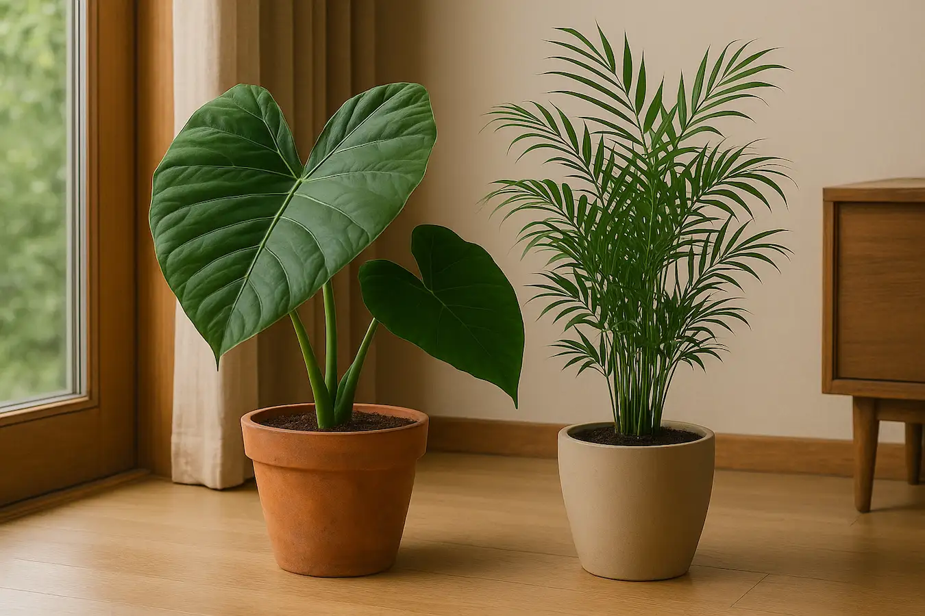 13. Alocasia/Colocasia – foglie gigantesche, richiedono acqua regolare e calore.